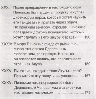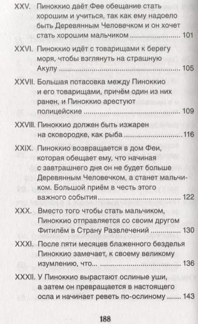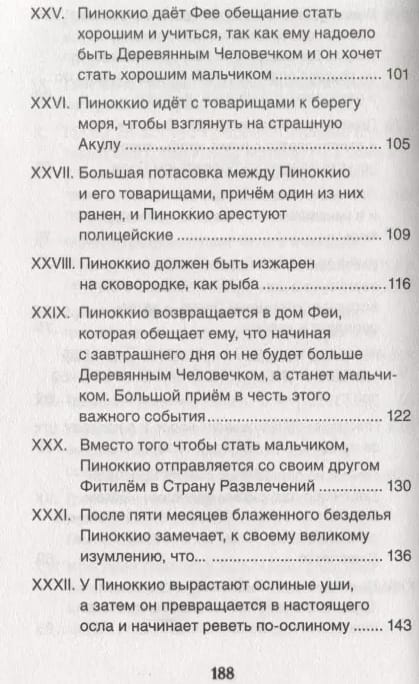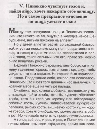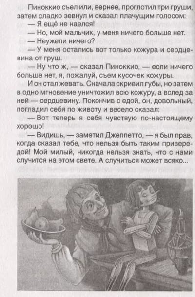 In this book you will find a fairy tale by Italian writer Carlo Collodi about the adventures of a wooden boy named Pinocchio. The exciting and at the same time touching story, loved by more than one generation of readers, will appeal to your child. Welcome to the magical world where the soft-hearted old man Geppetto, the cute Cricket, the cunning Cat and Fox, the sad Harlequin and many, many other famous characters live!