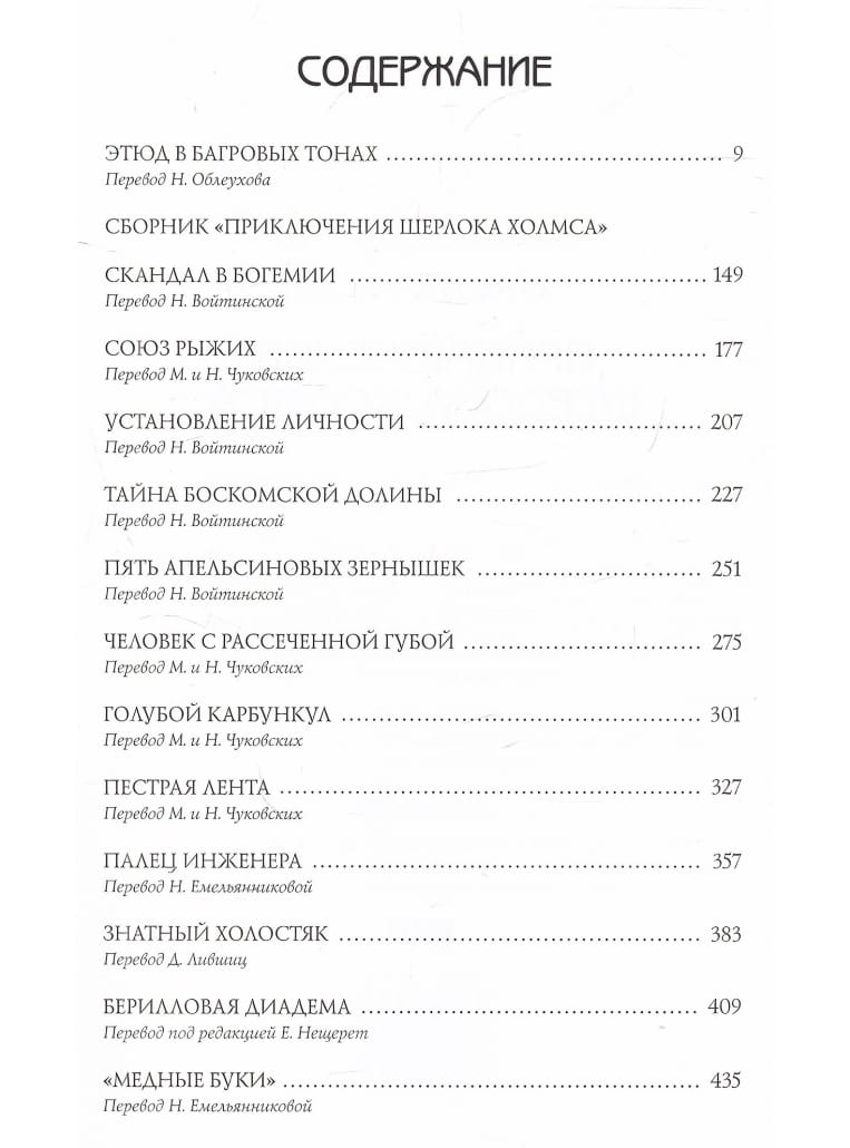 The first book of the planned four-volume book includes the story "Etude in Crimson Tones" and the collection "The Adventures of Sherlock Holmes" of twelve stories.
