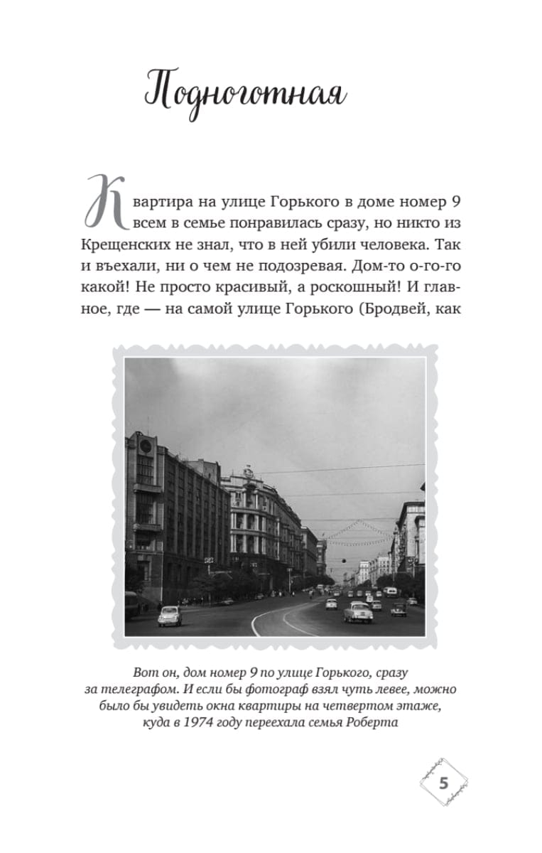 The fourth-floor apartment at 9 Gorky Street had kept its secrets even before the Kreschenskys had moved in: a mysterious and unsolved murder had mysteriously affected the lives of the new residents. Grandmother Lida was sure that the closet was haunted by a ghost, and the tenth-grader Katya and her school friend Irka did not miss the opportunity to hunt together at night for this apartment devil.