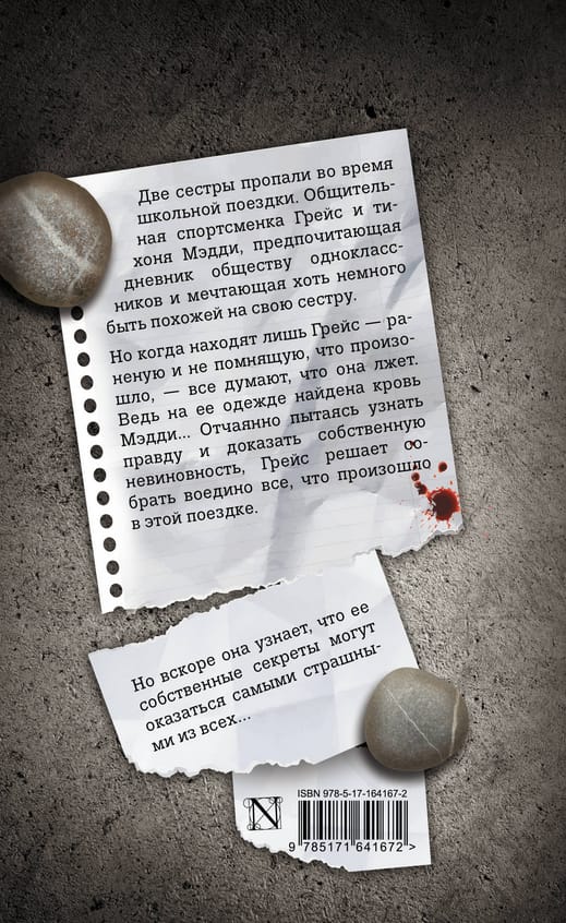 But when only Grace is found - injured and with no memory of what happened - everyone thinks she is lying. After all, Maddie's blood was found on her clothes... Desperate to find out the truth and prove her innocence, Grace decides to piece together everything that happened on this trip.