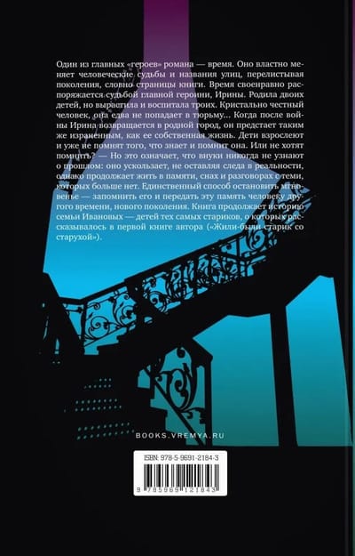 One of the main "heroes" of the novel is time. It powerfully changes human destinies and street names, turning over generations like the pages of a book. Time arbitrarily disposes of the fate of the protagonist, Irina. She gave birth to two children, but raised and educated three. A crystal-honest person, she almost goes to prison... When Irina returns to her hometown after the war, it appears as wounded as her own life. Children grow up and no longer remember what she knows and remembers. Or don't want to remember? - But that means the grandchildren will never know the past: it slips away, leaving no trace in reality, yet it continues to live on in memories, dreams and conversations with those who are no longer there. The only way to stop the moment is to remember it and pass this memory to a person of another time, a new generation. The book continues the story of the Ivanov family - the children of the very old men, about whom the author's first book ("Once upon a time there was an old man and an old woman").