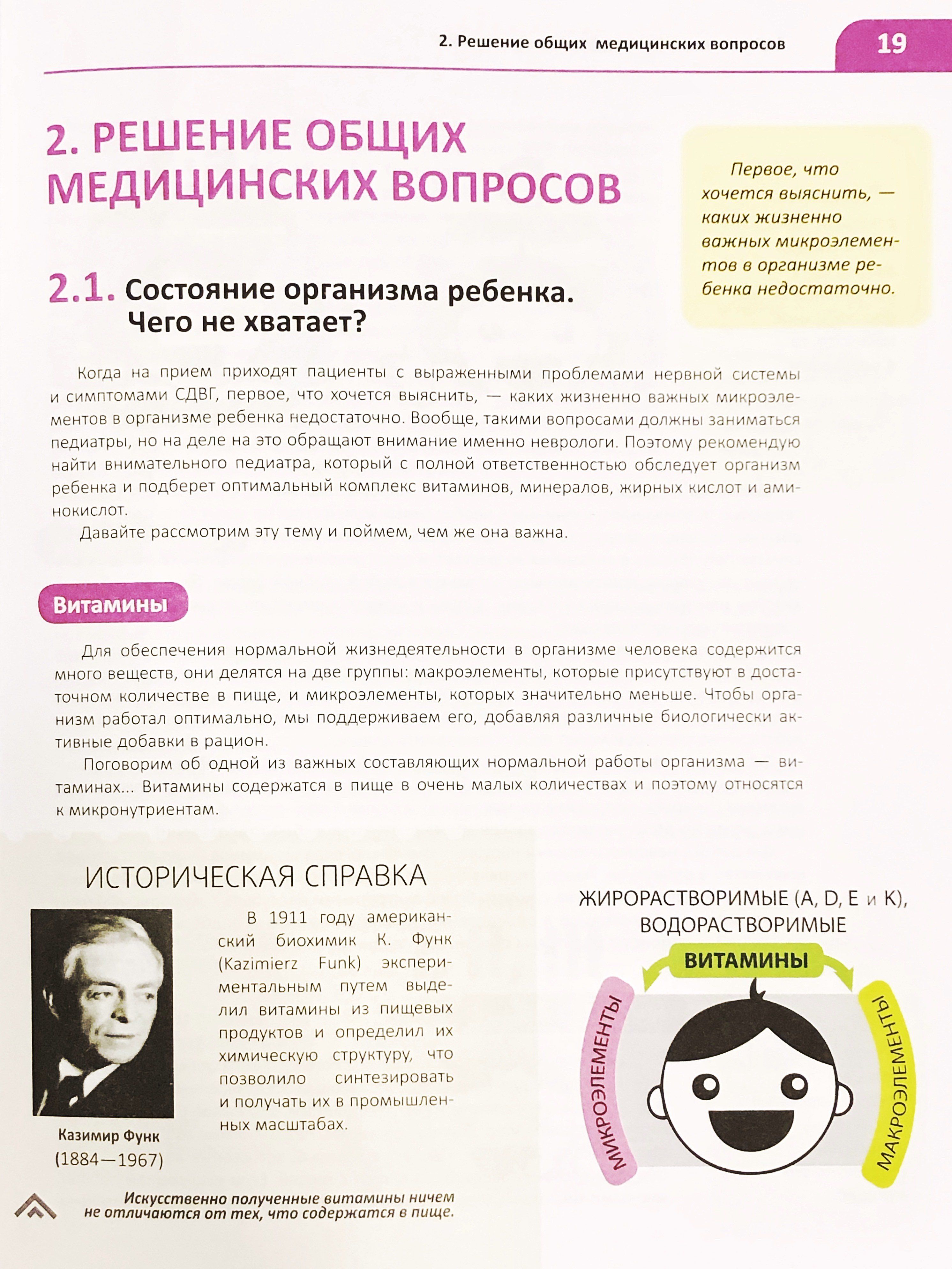 The author is the chief physician, general director of the clinic "Doctrine" (part of the group of neurological clinics "Prognoz"), a doctor-neurologist, a doctor-psychiatrist, has been dealing with the problems of children with attention deficit hyperactivity disorder (ADHD) for many years. The book describes many techniques that will help parents to determine the right tactics to combat ADHD. The book is addressed to parents, teachers, speech therapists and neurologists.