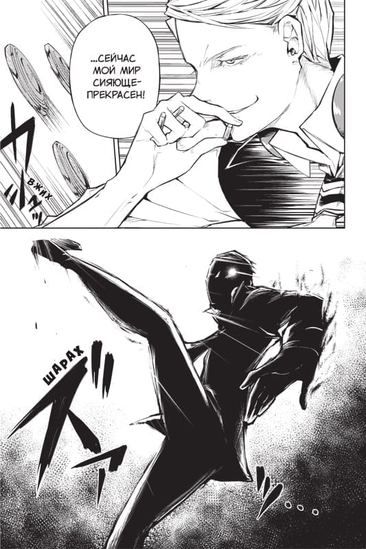 Kyoka Izumi goes on her first assignment with Atsushi Nakajima and tries her hand at being a detective. They do their best to complete the assignment, but then Koyo Ozaki, Kyoka's oldest friend since the mafia, shows up. She wants Kyoka back, so she openly attacks her and Atsushi! Meanwhile, the detective agency, realizing that a conflict with the Guild or the mafia is unavoidable, moves its headquarters to a new location. Under Fukuzawa's command, they prepare to fight back, though they are surrounded on all sides. A three-way battle begins - of organizations and abilities! Please be advised that the third omnibus contains the short story "Dog Without a Soul" by Kafka Asagiri and Yu Okubo's notes with curious facts about famous writers as extras.