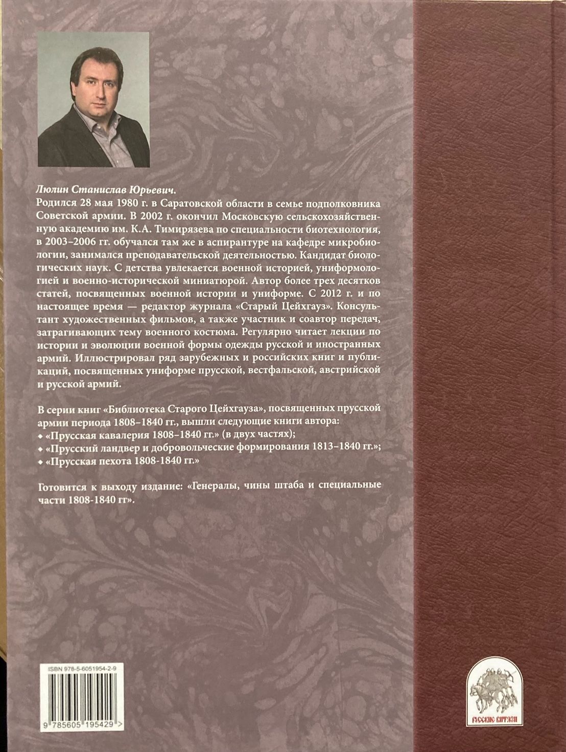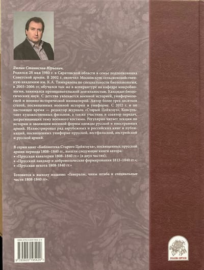 This publication is a continuation of the series of books by Stanislav Lyulin, published by the Russian Knights Foundation, dedicated to the Prussian army of the period 1808-1840: history of units, uniforms, equipment and weapons. The fourth book of the series examines units of the guards and army line and light infantry. The book is richly illustrated with several hundred original engravings, lithographs, graphic and painting works from museum and private collections, depicting the ranks of the Prussian army. The publication will serve as a necessary reference material for all those involved in military history and uniforms of the first half of the 19th century - collectors, museum workers, reenactors, fans of military-historical miniatures and the history of military uniforms.