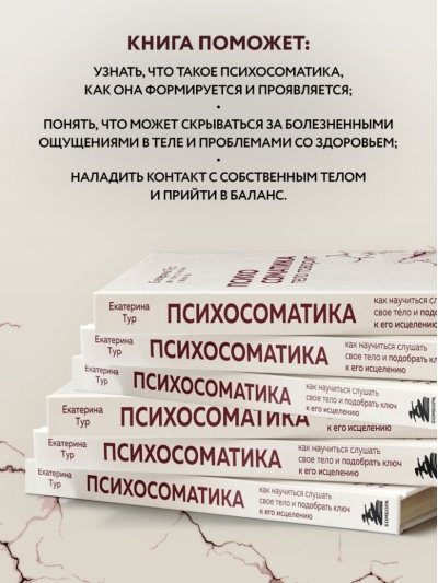Ekaterina Tur, author of "Psychosomatics: The Body Speaks," explains the importance of listening to your body and recognizing its signals. "Sometimes illness truly does develop by chance: due to factors, genetic defects, or a combination of circumstances. But more often than not, physical pain is a reflection of the emotional pain a person has carried for decades." This is a valuable book about the impact of our thoughts and behavior on the health of the entire body.