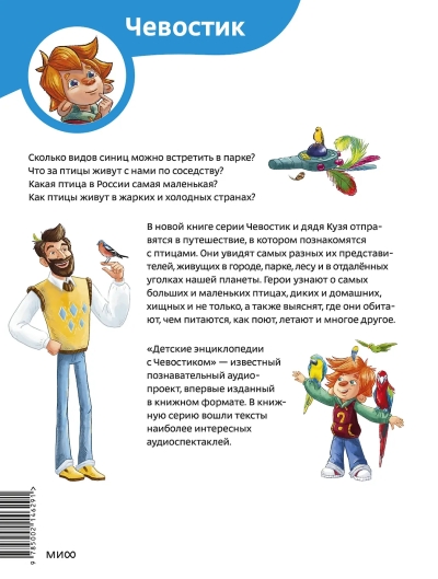 Chevostik and Uncle Kuzya embark on a new journey into the world of amazing birds. These beloved characters will encounter a wide variety of birds living in the city, park, forest, and remote corners of our planet. They'll learn about the largest and smallest birds, wild and domestic, raptors, and more, and discover where they live, what they eat, how they sing, how they fly, and much more.