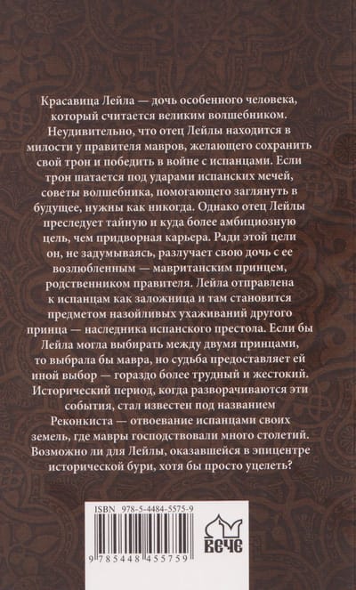 The beautiful Leila is the daughter of a special man, reputed to be a great sorcerer. It's no surprise that Leila's father is favored by the ruler of the Moors, who wants to preserve his throne and win the war against the Spanish. With the throne teetering under the blows of Spanish swords, the advice of a sorcerer who can peer into the future is more needed than ever. However, Leila's father pursues a secret and far more ambitious goal than a courtly career. To this end, he unhesitatingly separates his daughter from her lover, a Moorish prince and relative of the ruler. Leila is sent to the Spanish as a hostage, where she becomes the object of the persistent courtship of another prince, the heir to the Spanish throne. If Leila could choose between the two princes, she would choose the Moor, but fate presents her with a different choice—a much more difficult and cruel one.