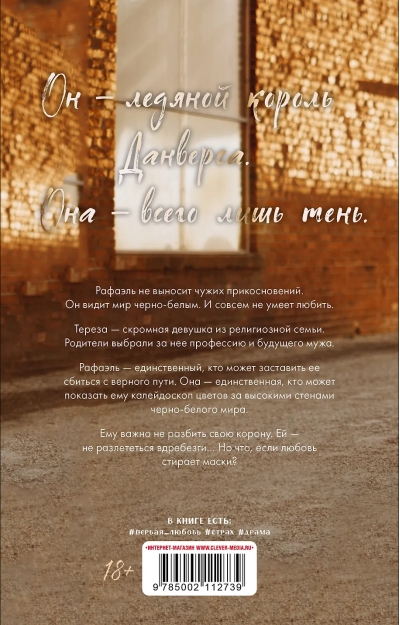He is the Ice King of Danvers. She is but a shadow. Raphael cannot bear to be touched. He sees the world in black and white. And he does not know how to love. Theresa is a modest girl from a religious family. Her parents chose her profession and future husband for her. Raphael is the only one who can lead her astray. She is the only one who can show him the kaleidoscope of colors beyond the high walls of a black and white world. He cares not to shatter his crown. She cares not to shatter into pieces... But what if love erases masks?