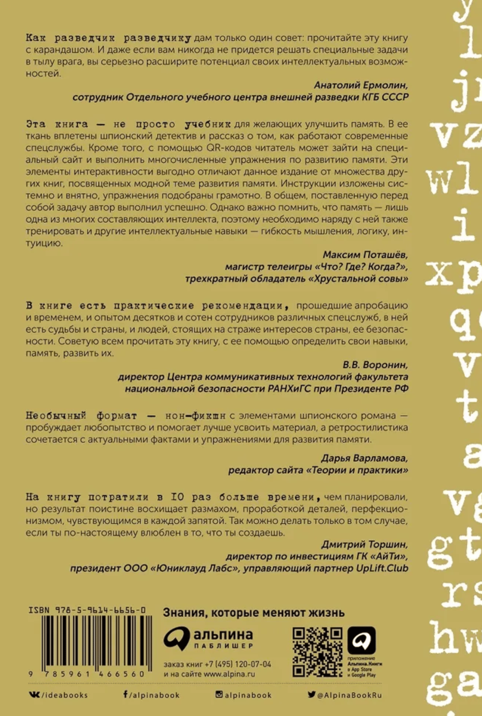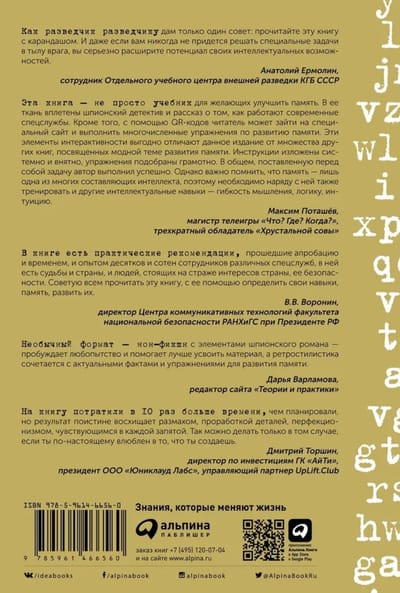 If we are used to using “crutches” like organizers, navigators, notebooks, our memory weakens. If we do routine work day after day, if we overload our memory with information without filtering and systematizing it, our ability to concentrate, our perception acuity, and our reaction speed deteriorate. You know all this yourself. The good news is that it is reversible. Memory can and should be trained. And the main profession for which excellent memory, clarity, and speed of thinking are vital is that of an intelligence officer.