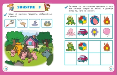 Developing attention and memory is an important part of preparing for future education, and they need to be nurtured as early as possible. Our resource provides boys and girls with a variety of game-based activities designed to quickly improve these skills, as well as practice thinking and speaking. While learning, children will spot differences in pictures, memorize funny poems, search for the odd object out, determine which part fits the whole image, connect objects with their shadows, and match meaningful pairs. With this resource, every lesson will turn into an exciting adventure, and the time will fly by before your child knows it.