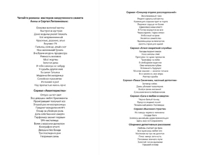 The library suffered a theft of the century. About a hundred rare books and manuscripts disappeared. Journalist Dima Poluyanov, a friend of the "historian" employee Nadya Mitrofanova, came to collect the hottest facts and assumed the tip-off was from within the library. Soon, the newspaper's editor-in-chief summoned Dima and offered him a trip to America. According to the FSB, the stolen books were in the possession of millionaire Paula Shevy and that our Professor Vasin was working with them. Poluyanov was to interview Paula and learn everything about the books. Poluyanov asked Nadya to follow the library employees. This surveillance nearly resulted in her death, and when her boss was murdered, Nadya, having withdrawn all her savings, flew to America on wings of fear, toward a true nightmare...