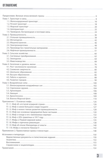 The book contains the latest data on Russia since the last Emperor Nicholas II - facts, figures, photos. Factual indicators are given in comparison with other eras - from the XIX century to the present day. Transportation and communications, industry, agriculture, education, living standards are shown in historical perspective. Against the background of more than a century's range of data, the Empire's records are seen especially brightly and vividly. The negative consequences of the revolution are equally vividly seen. Figures are given in the form of graphs and tables, accompanied by quotes from contemporaries, and color photographs convey the atmosphere of the era. In the appendix to the book, the main Soviet myths about the peaceful and military life of the Empire, as well as about the revolution and its causes, are discussed. The book is based on historical documents, including those that were previously classified as "top secret". The new information changes the view of the entire modern history of Russia, contributes to the connection of times and generations.