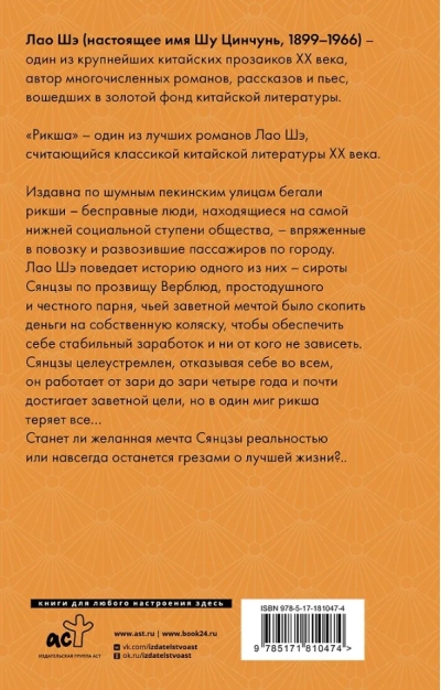 "Rickshaw" is one of Lao She's finest novels, considered a classic of 20th-century Chinese literature.
