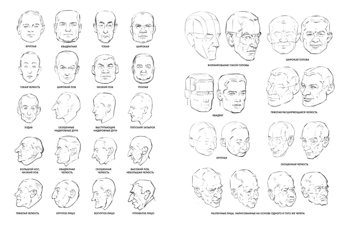 The individuality of faces is a subject of interest to everyone, and especially to those who have at least a little talent for drawing. Once we begin to understand the reason for the differences in faces, the subject becomes all-consuming. Faces not only make us stand out, but they say a lot about each of us. Thoughts, emotions, worldview, and even our lifestyles are imprinted on our faces. The mobility of the flesh - in other words, facial expressions - gives a face more than just uniqueness. Let me tell you right away: you are not required to be able to "look into the soul" or read minds to draw a head well. It requires first and foremost a proper interpretation of shapes in proportion, perspective, and lighting. All other qualities appear in the drawing as a result of interpreting the form. If the artist gets it right, the "soul", or character, will be revealed. It is also very important for an artist to be able to draw hands convincingly, and my book contains material on this subject as well.
