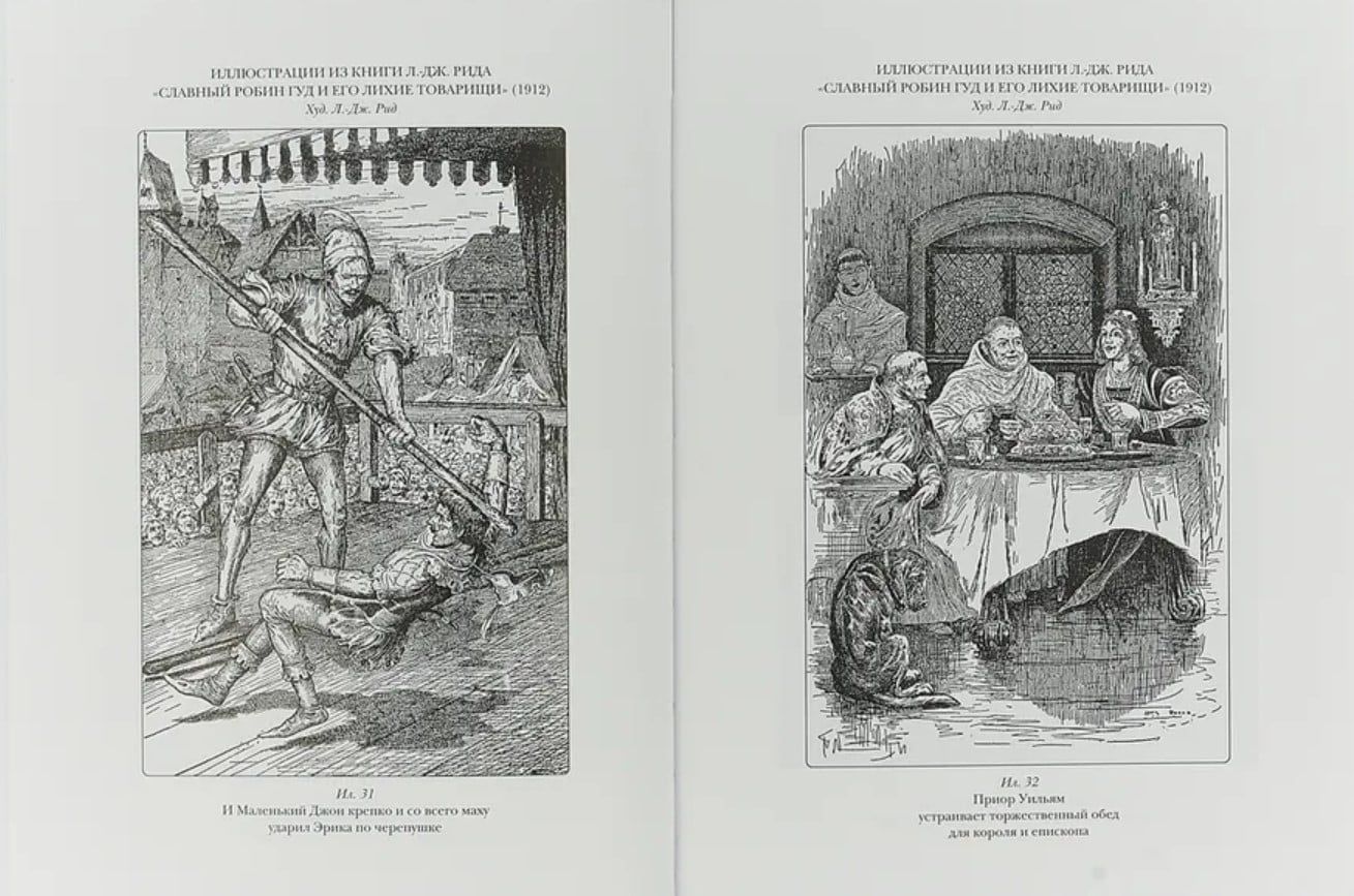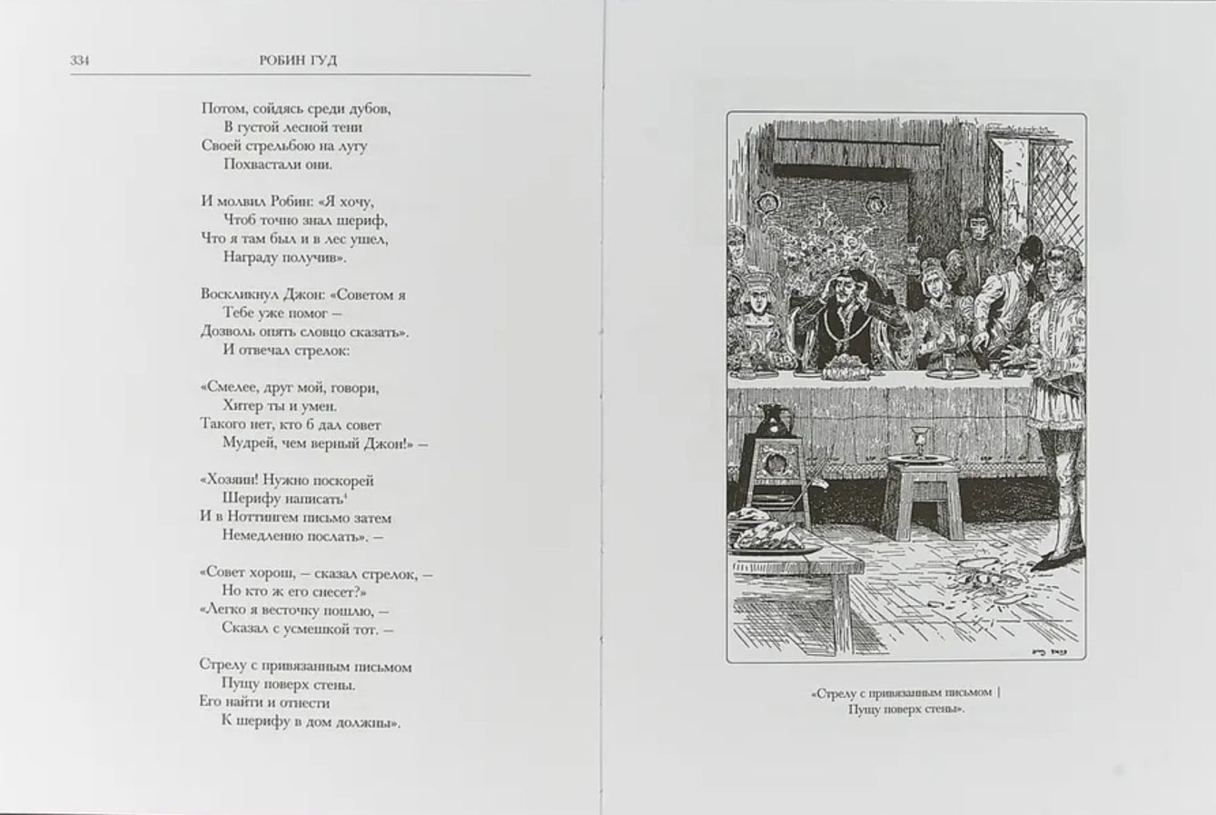 Along with the legendary King Arthur, Robin Hood is one of the most popular heroes of English folklore. In the Middle Ages, a large cycle of remarkable works developed around the figure of the noble leader of forest robbers and exile. A complete scientific translation of this cycle is offered to the attention of the domestic reader for the first time. Ballads about Robin were created over six centuries. They sometimes echo chivalric novels, sometimes display the sophistication inherent in the Baroque style, and the simplicity and cheerfulness of the folk poetic text are interspersed with witty and subtly thought-out parody. Ballads have not lost their freshness and relevance to this day. Their eternal themes: the confrontation between blind law and moral position, the dream of a good and fair defender, greed and spiritual blindness of the powerful, the final triumph of virtue. The inhabitants of the Green Forest appear before the reader: Robin Hood and Maid Marion, Little John and Will Stutley, Friar Tuck and Guy of Gisborne, King Edward and the Sheriff of Nottingham - in all their diversity and versatility; "good old England" opens up, according to the famous expression, "which never existed, but seemed to have recently remained somewhere around the bend." The ballads about Robin are the embodiment of the British spirit, freedom and honor, not bound by the chains of law; English freedom, the expanses of green forests and sun-drenched lawns; the eternal "merry month of May", which is so dear to the heart of the freedom-loving inhabitant of foggy Albion. In addition to the ballads, the volume includes play-games dedicated to the celebration of May Day (a merry celebration of spring and annual rebirth, known in England since ancient times), as well as fragments of historical chronicles that allow us to correlate the collective image of Robin with people who actually lived, whose names are found in the house registers of eminent families, in censuses, in unpaid tavern bills for ale and beef, and even in court records. The section "Additions" includes the best of the classical translations of the ballads about Robin known today (N.S. Gumilev, M.I. Tsvetaeva, Vs.A. Rozhdestvensky, S.Ya. Marshak, G.V. Adamovich, G.V. Ivanov), as well as versions of stories about Robin, the plot and denouement of which are sometimes the opposite of those included in the main section of this publication. The collection is filled with masterful illustrations by L. J. Reed, representing not only genre scenes from the life of Robin and his restless companions, but also - a huge rarity - a gallery of all the characters in the cycle individually.