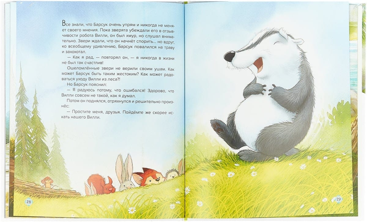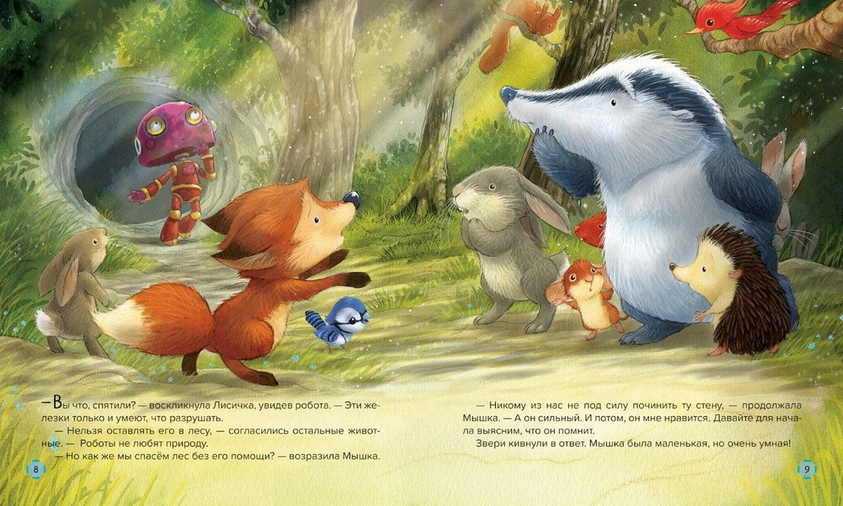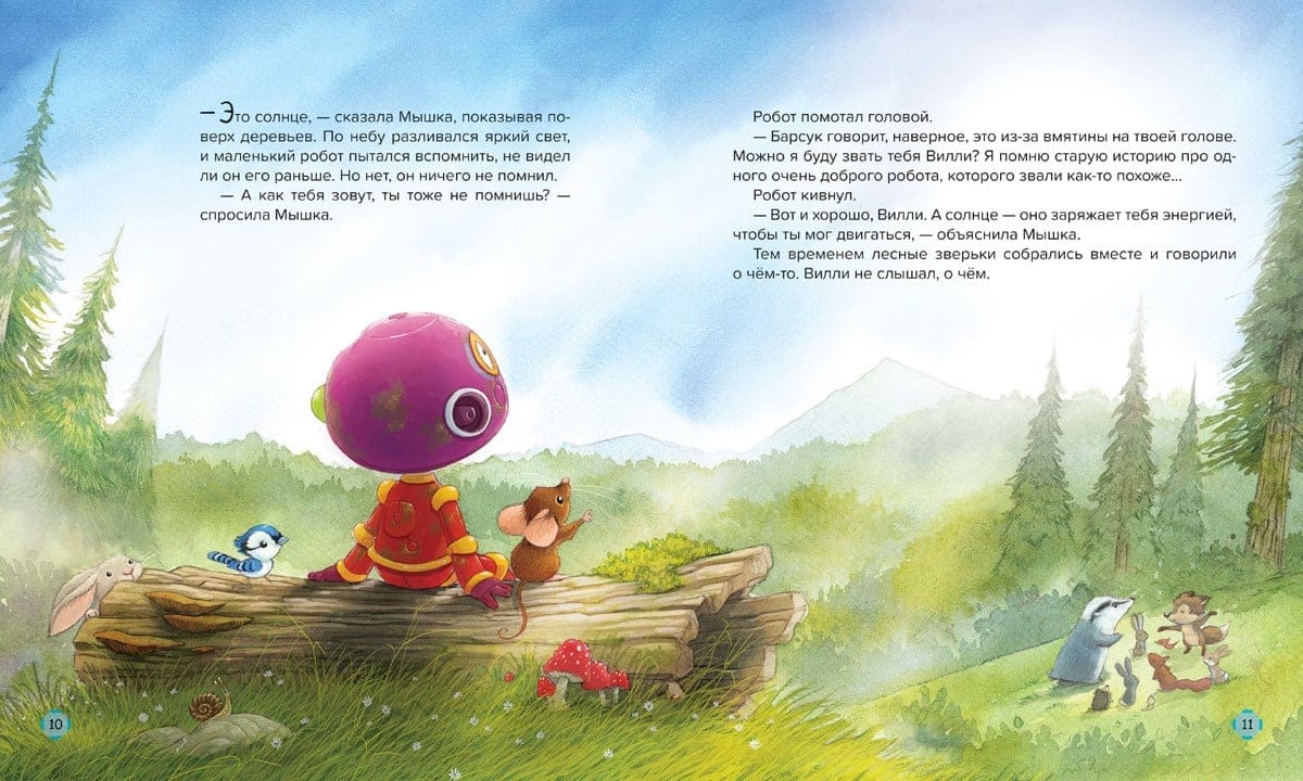 "Bedtime Stories" - popular classic and new fairy tales for babies - will create an atmosphere of quiet, cozy and magical mystery. It is so easy to fall asleep with these beautifully illustrated stories, and sleep comes nice and healthy. Robot Willie wakes up from a long sleep in a green forest. He doesn't remember at all what used to be, how gray the world used to be. Iron Willie is not like the small animals living in the forest, but it is from him they expect help - because the forest, their home, was in danger. Can the robot be kind and sympathetic? Can he become a true friend to the animals?
