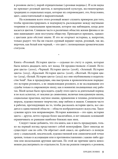 Although pink is common in nature, it was rare in European culture until the 14th century: it was rarely used in painting, clothing, or everyday life. Everything changed with the import of an exotic dye—pernambuco—to Europe, and later with the development of floristry: it was only in the 18th century that truly pink rose varieties were developed. It was then that the color received its name from the flower. When and how did pink become a "feminine" color? How was its development connected to fashion, botany, heraldry, and religious symbolism? Why was it associated more with masculinity in the Middle Ages, while in the 20th century it found itself at the center of aesthetic, social, and ideological shifts? Drawing on a variety of sources, the author traces the complex and contradictory history of pink—from cave paintings and ancient vases to the Barbie doll. Michel Pastoureau is a leading medieval historian and professor at the École Practique des Hautes Études in Paris. NLO Publishing House has previously published his books "Blue," "Black," "Red," "Green," "White," and "Yellow," as well as "Devilish Matter. The History of Stripes and Striped Fabrics."