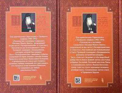 "The "Quatroevangelium" covers the events of Sacred History beginning with the conception of John the Baptist and ending with the Ascension of the Lord. "The Apostle" includes a detailed analysis of the text of the Book of the Acts of the Holy Apostles, the Council Epistles, the Epistles of the Apostle Paul, and the Apocalypse of St. John the Theologian. The author stands on strictly ecclesiastical positions, guided by the interpretations of the Holy Fathers and the Tradition of the Church. The book is intended not only for students of theological schools, but also for everyone who seeks to better understand the Holy Books of the New Testament.