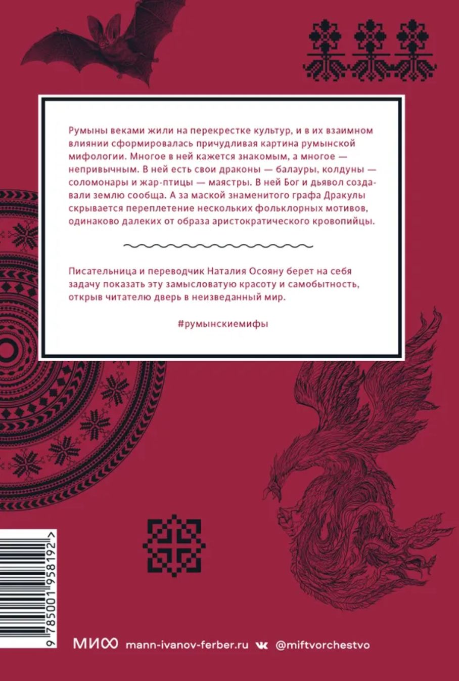 Romanian mythology is an example of "American Gods" in real history, since the territory of modern Romania has long been at the crossroads of cultures and has seen at least three mythological eras: Thracian, Roman and Christian. The mutual influence of religious cults (so-called religious syncretism) eventually led to the formation of the pantheon, consisting of seemingly Christian saints headed by the Christian God, but dig a little deeper, and surprising things become clear: take at least the fact that the world and humanity, if Romanian legends are to be believed, were created by two demiurges at once - light and dark, the very enemy of the human race, or the devil. If we take into account that throughout its history the culture of the people, which is now called Romanian, was also influenced by neighboring cultures, including Slavic, the picture becomes even more complex and beautiful. Showing this intricate beauty and identity is the main task of the book you are holding in your hands, because it is not enough to open the door to a hitherto unexplored world, you have to lure the reader and keep him.
