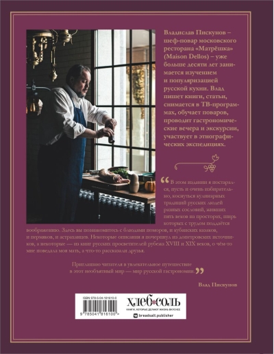 "Russian cuisine. The main thing for 500 years" is a revised version of the three-volume book by the chef of the restaurant "Matryoshka", popularizer of Russian cuisine and author of many cookbooks and articles - Vladislav Piskunov. The author chose the best for you and left the main thing. Vlad has been studying Russian cuisine for more than 10 years: collecting recipes from books by Russian authors, traveling around Russia, communicating with the keepers of culinary traditions and looking for the names of unfamiliar Russian dishes in the "Explanatory Dictionary of the Living Great Russian Language" by V. Dahl. The author of "Russian cuisine" himself cooked, photographed and ate the dishes that you can now repeat yourself!