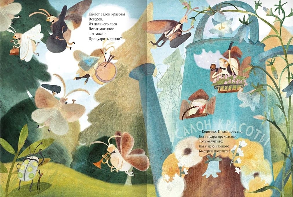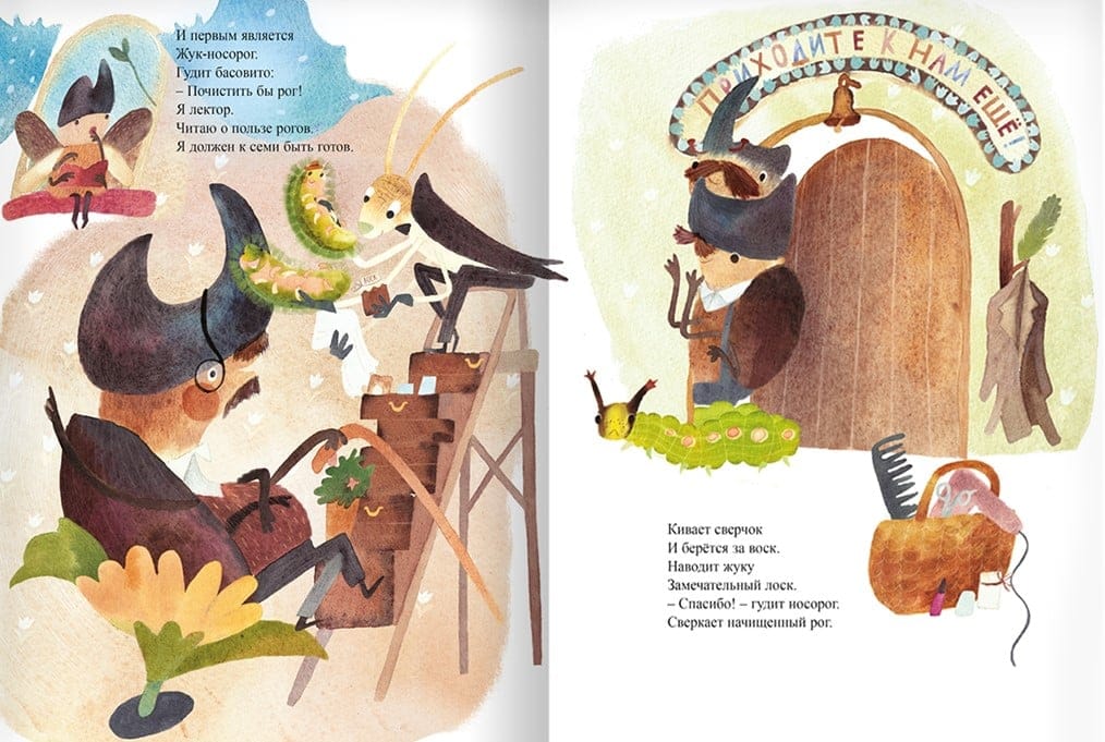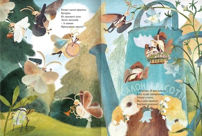 All day long, the mustachioed cricket polishes butterflies, dragonflies and beetles in the Kolokolchik beauty salon.