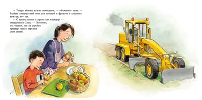 There are a great many children's books about cars, transport, road and construction equipment. Of course, no boy can resist them! It seems that nothing fundamentally new can be invented in a story about cars, but the Swedish masters of children's books - writer Eva Widén and artist Jens Albom managed to find a very unusual angle. One day, Sasha was sitting at the table and playing with cars, and his mother called him to bake an apple pie. At first, Sasha was wary of this proposal. He thought that baking pies was an activity for girls. But it turned out that this was not so at all, and all of Sasha's construction machines came in very handy at the "pie construction". But indeed, if you look closely, the construction, loading and cleaning work that the machines do is very similar to the actions that Mom does when she bakes a pie. Mom cuts off a thin layer of peel from an apple - in the same way Sasha's grader removes the top layer of soil. Mom pours flour from a measuring ladle into a bowl - just like a dump truck. Mom mixes dough with a mixer - what a concrete mixer. Rolls out dough on the table with a rolling pin - an asphalt roller! And this is not all the special transport involved in making the pie. A boom lift, an excavator, a bulldozer, a forklift, a tractor and a garbage truck - they all found a place on the pages of the book. If you ask an adult what this book is about, he will answer that this is a book about the ability to find common ground in things that, at first glance, are completely different; about the ability to negotiate and act together. Parents will say that this book is an excellent tip on how to usefully spend time with children. And the child will answer without hesitation that this is a book about cars. And they will all be absolutely right! For children of preschool age.
