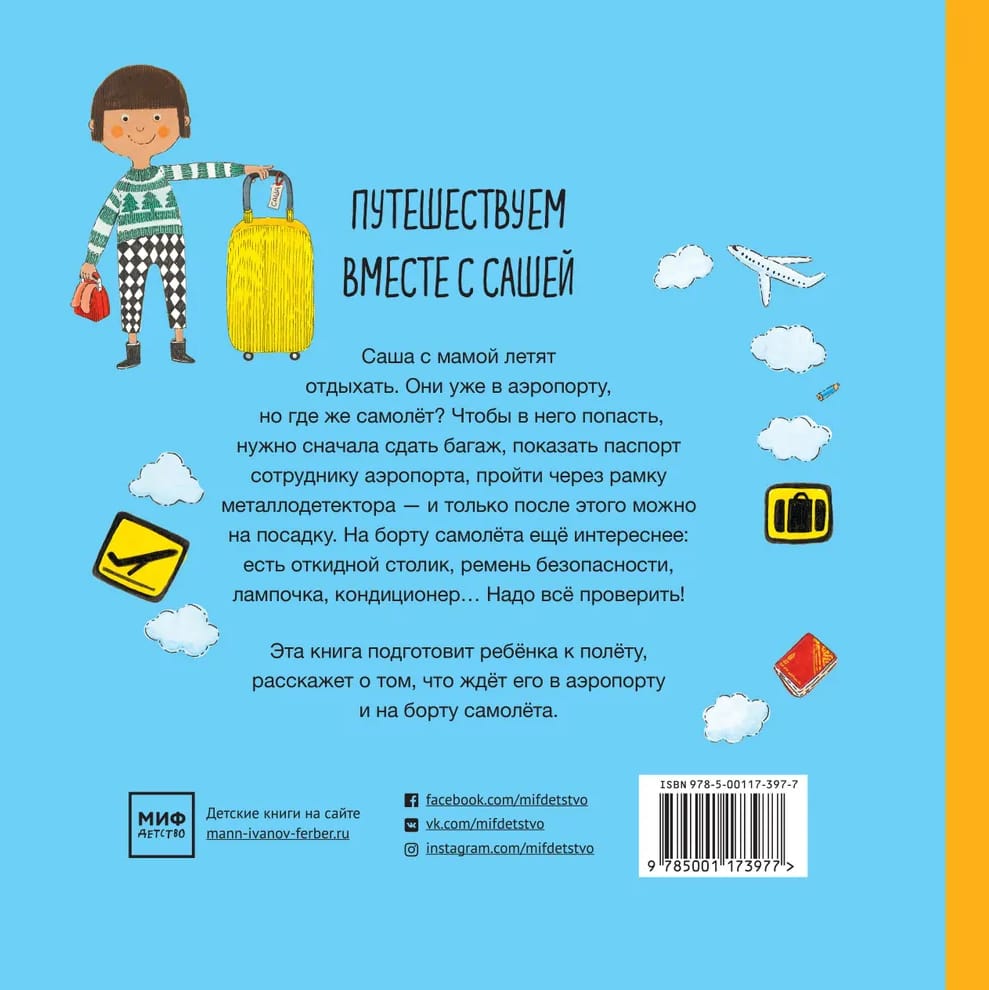 Sasha and her mother go on a flight. But first you need to weigh the suitcases, pass passport control, and then security. Finally, Sasha and her mother approach a huge plane. But who will run it? My mom doesn't have a driver's license, and Sasha barely learned to ride a bike. How exciting and interesting this is! On the plane, Sasha has her own chair, window, table, lamp and air conditioning. We have to try everything! “Flying is great,” says Sasha.