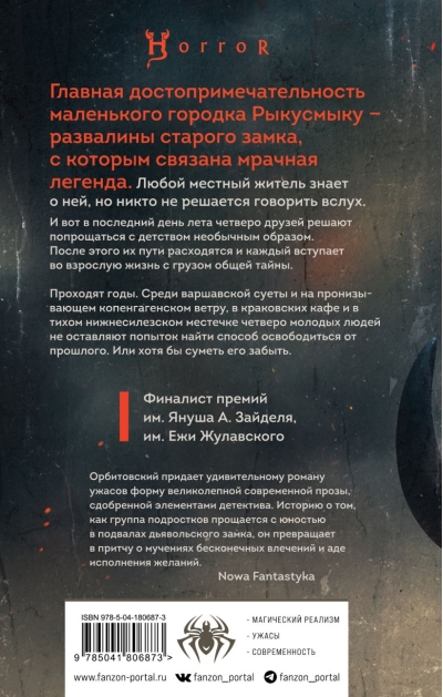 Do you want to become rich? Are you looking for love? Or do you want to live with the voices in your head? Make a wish and see what happens. Fulfillment of dreams. Payment upon fulfillment. Everyone has a wish. Dreams of wealth, love, happiness. Shimek and his three friends live in the small town of Rykusmyku. They are tormented by teenage problems and thoughts about the future. And everyone has a cherished wish for the fulfillment of which they are ready to do anything. The main attraction of the town is an old castle, which is connected with a dark legend, everyone knows about it, but no one dares to speak aloud. On the last day of summer the friends gather courage and climb into the castle dungeons to realize their dreams. But there is a price to pay for everything, and now they are bound by a secret that has changed their entire lives. They need to find a way to free themselves from the past. Or at least be able to forget it.