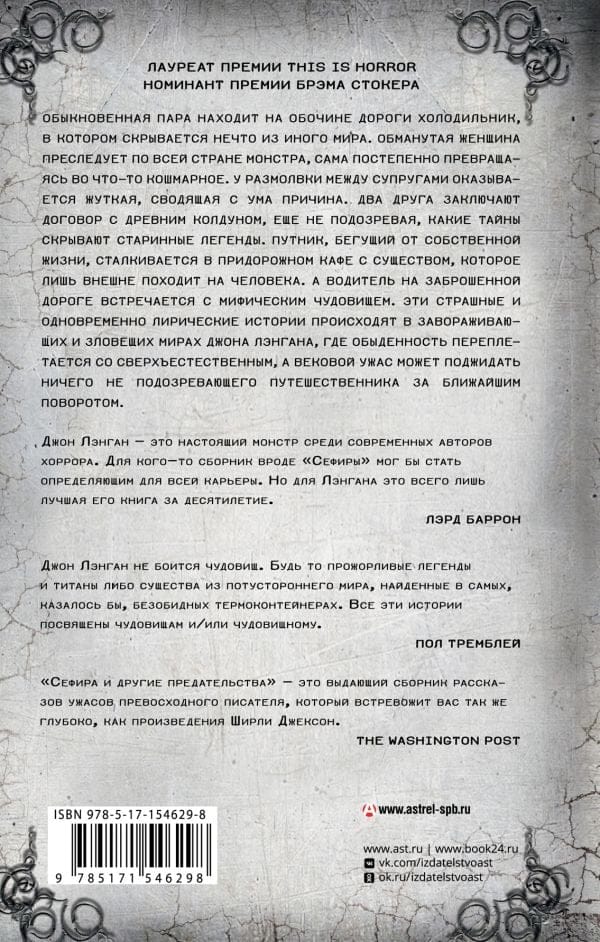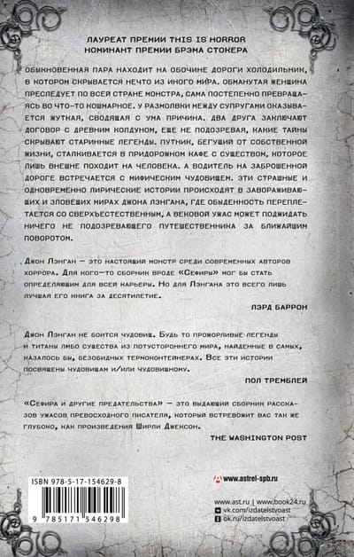 An ordinary couple finds a refrigerator on the side of the road that hides something from another world. The deceived woman chases the monster across the country, gradually transforming into something nightmarish herself. A rift between spouses turns out to have a creepy, maddening reason. Two friends make a pact with an ancient sorcerer, not yet realizing what secrets the ancient legends hide. A traveler, running from his own life, encounters in a roadside cafe with a creature that only superficially resembles a man. And a driver on an abandoned road meets a mythical monster. These frightening and simultaneously lyrical stories take place in the fascinating and sinister worlds of John Langan, where the ordinary is intertwined with the supernatural, and centuries-old horror may await the unsuspecting traveler around the next corner.