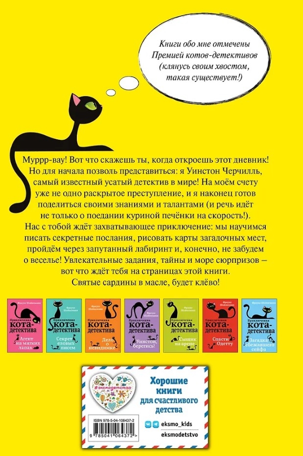Purrr-wow! That's what you'll say when you open this diary! But first, let me introduce myself: I'm Winston Churchill, a short-haired British, aristocratic cat and the most famous mustached detective in the world! I've already solved more than one crime, and I'm finally ready to share my knowledge and talents (and it's not just about eating chicken liver for speed!). An exciting adventure awaits you and me: we'll learn to write secret messages, draw maps of mysterious places, go through a confusing maze and, of course, we won't forget about fun! Fascinating tasks, mysteries and a sea of surprises - that's what awaits you on the pages of this book. Holy sardines in oil, this is going to be awesome!