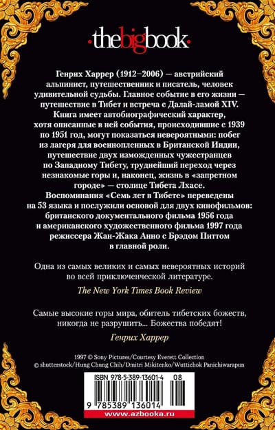 Heinrich Harrer (1912-2006) was an Austrian mountaineer, traveler and writer. His book "Seven Years in Tibet (My Life at the Court of the Dalai Lama)", first published in German in 1952, was translated into 53 languages and served as the basis for two movies: a British documentary in 1956 and a famous American feature film in 1997 starring Brad Pitt. Thanks to this edition, the Russian reader will for the first time get acquainted with the full text of Heinrich Harrer's book translated from German. The author's intonation and text structure have been carefully preserved.