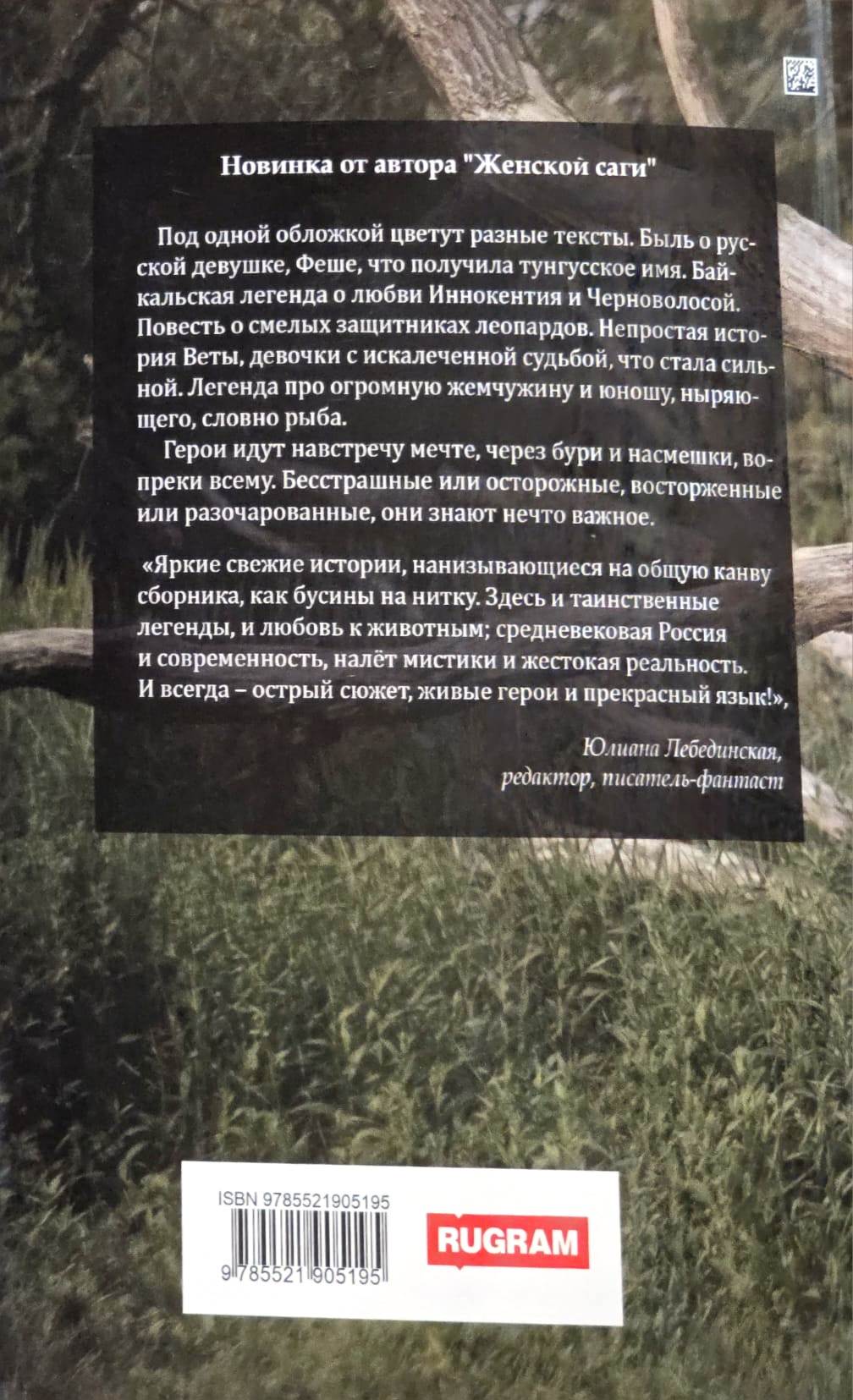 Different texts flourish under a single cover. A true story about a Russian girl, Fesha, who received a Tungus name. A Baikal legend about the love of Innokenty and Chernovolosaya. A tale of brave leopard defenders. The difficult story of Veta, a girl with a broken fate who became strong. A legend about a huge pearl and a young man who dives like a fish. The heroes pursue their dreams, through storms and ridicule, against all odds. Fearless or cautious, enthusiastic or disillusioned, they know something important.