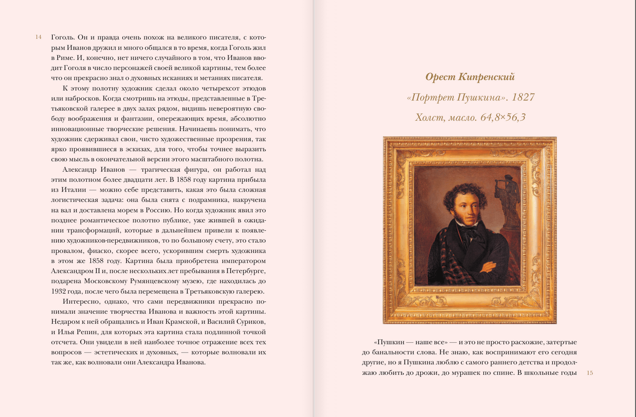 "Masterpieces of the Tretyakov Gallery. A Personal View" is a fascinating walk through the halls of the Tretyakov Gallery together with Zelfira Tregulova. The book describes the famous paintings of Russian artists of the 19th and 20th centuries: Ilya Repin, Mikhail Vrubel, Kazimir Malevich and others.The author talks about which paintings seem to her the most significant for the history of world art and why.The book will be of interest to readers who want to truly appreciate the treasures of Russian painting and look at them through the eyes of one of the most respected curators of the country.