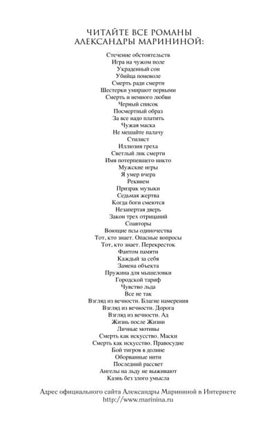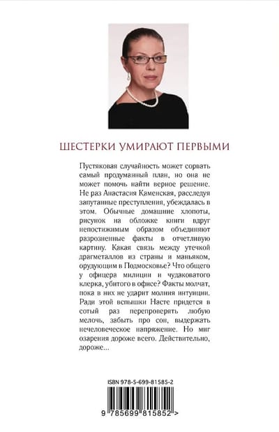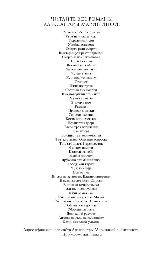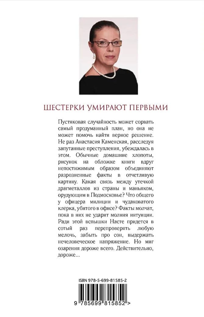 A trifling accident can derail the most elaborate plan, but it can not help to find the right solution. More than once Anastasia Kamenskaya, investigating intricate crimes, was convinced of this. Ordinary household chores, drawing on the cover of the book suddenly unfathomable way unite disparate facts in a distinct picture. What is the connection between the leakage of precious metals from the country and a maniac, violent in the Moscow region? What do a police officer and a cranky clerk killed in an office have in common? The facts are silent until they are not struck by the lightning of intuition. For the sake of this flash Nastya will have to recheck every detail for the hundredth time, forget about sleep, endure inhuman tension. But a moment of insight is more expensive than anything else. Indeed, more expensive...