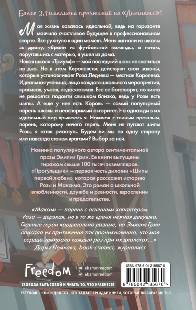 The new Triumph School is my last chance to avoid falling into ruin. But this Kingdom has its own rules, established by Rosa Ledneva, the local Queen. She's the perfect student, the face of every school event, beautiful, smart, and untouchable. Everyone idolizes her, but no one dares get too close, because Rosa has thorns. She also has a King—the most popular guy in school and an undisputed authority figure. But one day, I burst into their perfect world. A newcomer with a dark past, a boy with nothing to lose. I'm not afraid of Rose's thorns; I'm ready to take a risk. Will we be on the same side or forever enemies? The choice is hers.