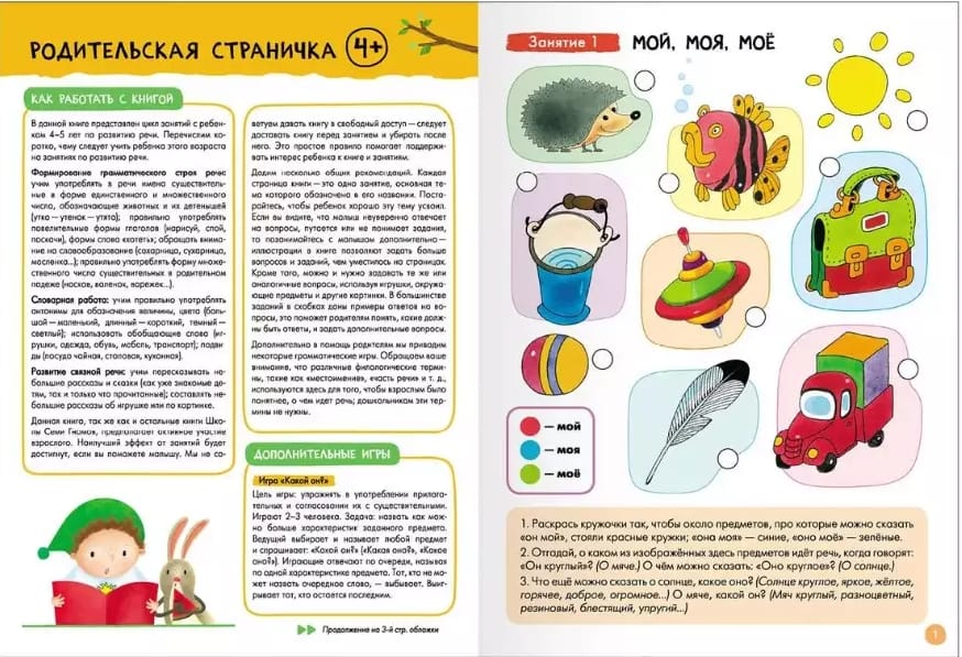 The system is designed in such a way that the child receives the necessary knowledge at the right time. Therefore, all the books in the School of the Seven Dwarfs have a clear age address and are developed strictly taking into account the age capabilities of the child. But the most important thing is that classes with the child give results and bring joy. Therefore, all tasks are built from simple to complex and follow the principle of "development through play". Any adult can work with a child, no special knowledge or experience is required. The parent page in each book will tell you what, how and why you need to develop at a given age.