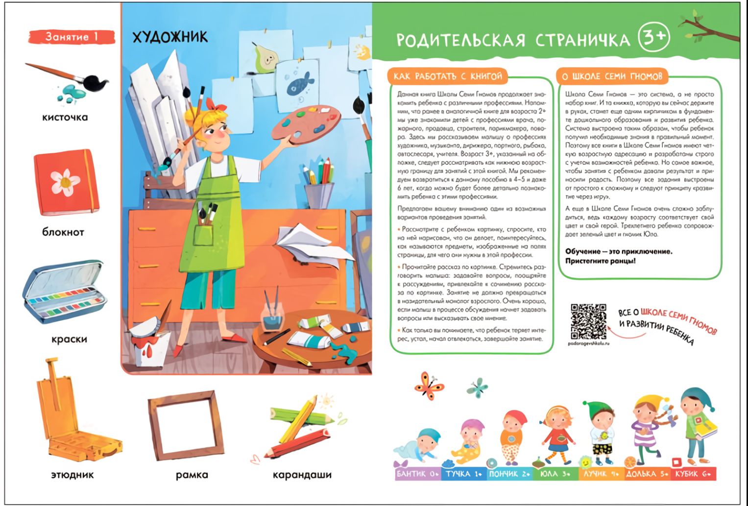 The system is designed in such a way that the child receives the necessary knowledge at the right time. Therefore, all the books in the School of the Seven Dwarfs have a clear age address and are developed strictly taking into account the age capabilities of the child. But the most important thing is that classes with the child give results and bring joy. Therefore, all tasks are built from simple to complex and follow the principle of "development through play". Any adult can work with a child, no special knowledge or experience is required. The parent page in each book will tell you what, how and why you need to develop at a given age.