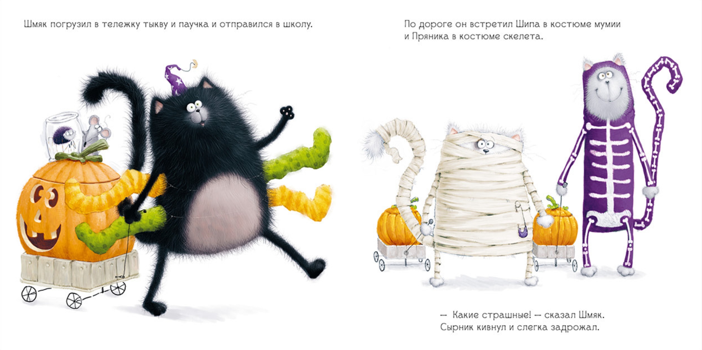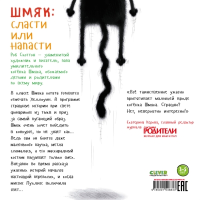 Smack is one of the most beloved characters among young readers, and for good reason. Your little one will grow and learn alongside this fluffy kitten, who's impossible not to fall in love with. And now, your favorite stories in a convenient paperback! The story of a beloved kitten who, along with his friends, is preparing to celebrate Halloween. The program includes scary stories by the light of jack-o-lanterns and a prize for the most frightening costume. Smack really wants to win the competition, but he doesn't know how... After all, he's afraid of even a small spider, his broom is broken, and his costume only evokes laughter. Suddenly, during the scary storytelling, a real commotion ensues, and when Mrs. Fluffy turns on the light...