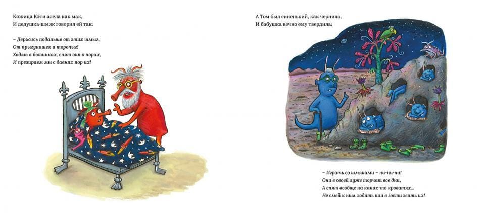 There was a little shmuck named Katie on a faraway planet. And not far away, on a steep hill, there lived a little shmuck named Tom. Once upon a time, on a far, far away planet, Tom and Katie met and fell in love. But Tom is a shmug, and like all shmugs, he's blue as ink. Kathy is a shmuck, and like all shmucks, she's as red as a poppy. And everyone knows from time immemorial that shmucks and shmucks can't be friends. What will happen when their kin and tribesmen find out? Age: from 3 years old.