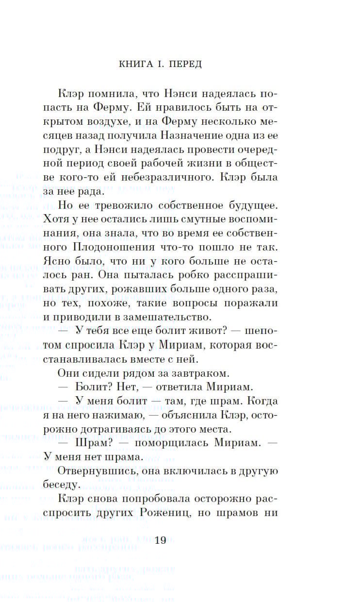 Claire was not supposed to love her child, or even see it - that was the rule of life in the commune. Newborns are immediately taken to the Nurturing Center, and after a year they are distributed among the Family Units. But even a well-oiled system can fail. And all Claire has to do is watch her son from afar and communicate with him occasionally. The main thing is to keep the boy happy. But the child can not adapt to the requirements of the commune, and those who do not fit into the framework, here are treated harshly....