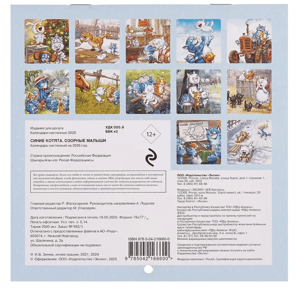 A funny cute calendar with sketches from the life of a large family of famous Blue Cats, who have won the love of thousands of fans in various Internet communities.