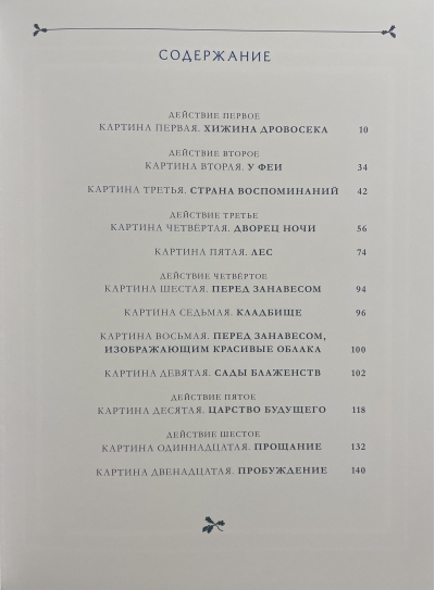 The plot revolves around the journey of the children Tyltyl and Mytyl in search of the Blue Bird. The Blue Bird is a symbol of happiness, which people seek everywhere, not realizing that it is right there, when they only need to look around. This play is a magnificent fairytale extravaganza whose profound conception helps children understand the most complex truths, and helps adults remember that they, too, were once children and try to see the world through their eyes.