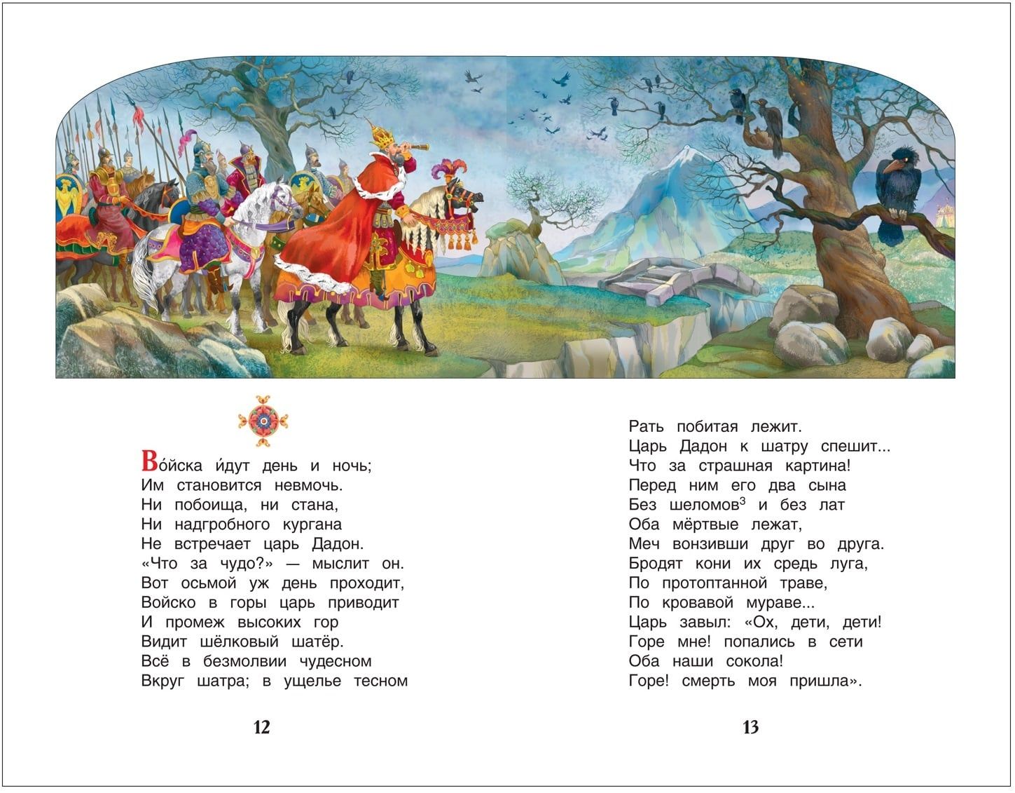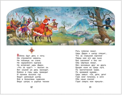 The book includes fairy tales by Alexander Pushkin "The Tale of the Golden Cockerel", "The Tale of the Dead Princess and the Seven Rich Men", "The Tale of the Fisherman and the Fish", "The Tale of Tsar Saltan, his son Prince Gvidon Saltanovich, the glorious and mighty rich man and the beautiful Princess Swan", "The Tale of the Popes and their Worker Balda". Illustrations by A. Lebedev.