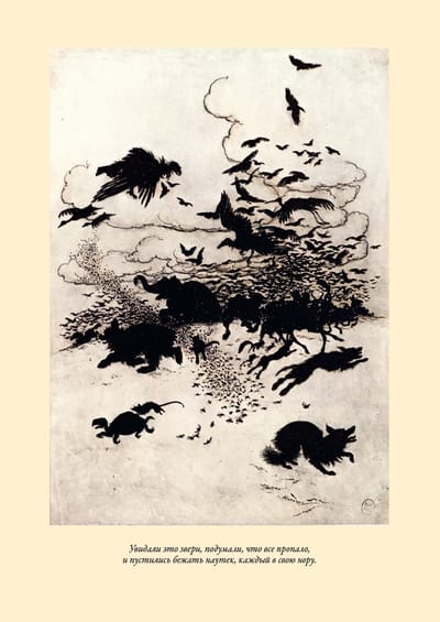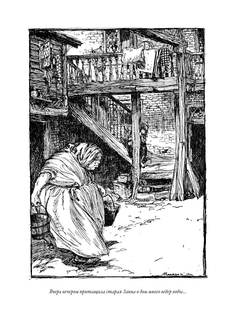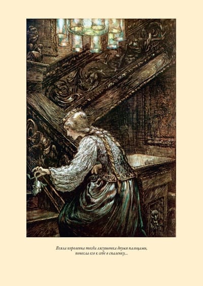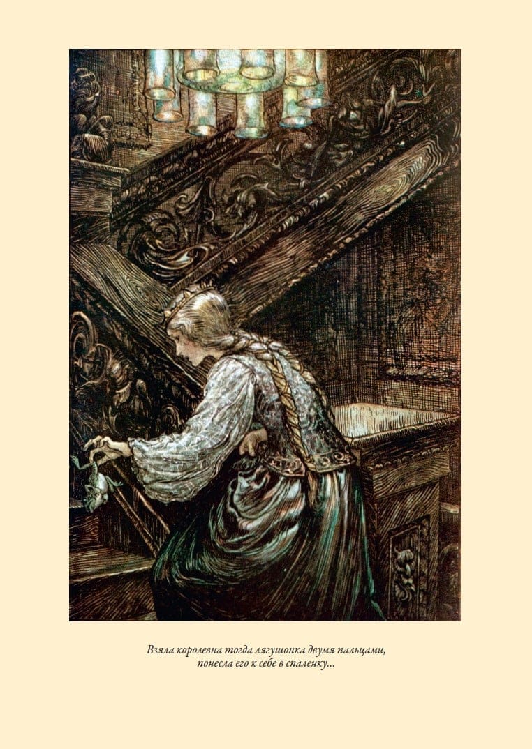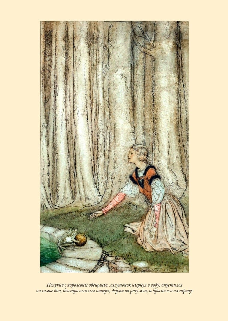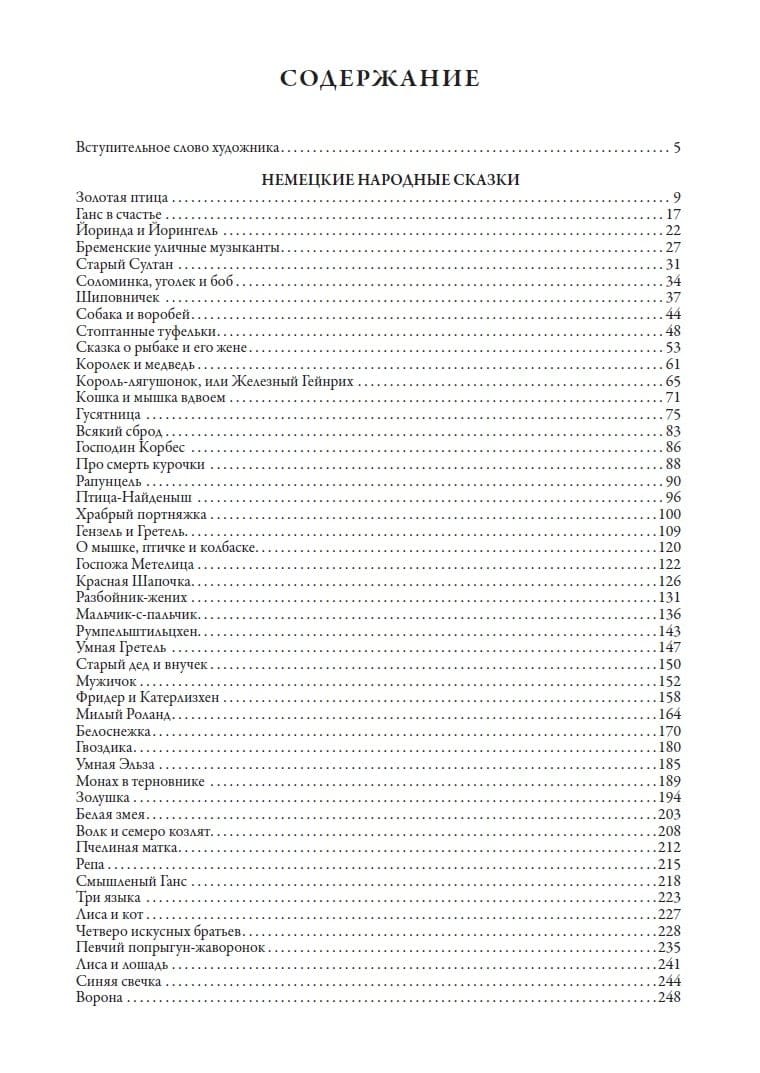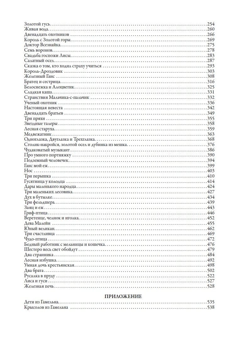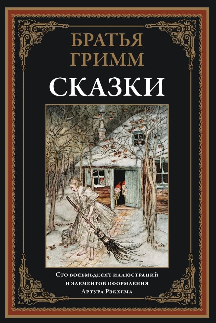 The edition includes one hundred and two German folk tales in the presentation of famous linguists and folklorists brothers Jacob Grimm (1785-1863) and Wilhelm Grimm (1786-1859). All tales are given in translation by Grigory Petnikov. At the end of the collection to the fairy tale "Children from Hammeln" is a transposition of the legend of the Pied Piper by Prosper Merimee translated from French by Anatoly Vinogradov. The edition is decorated with magnificent black-and-white and color drawings by the famous British artist Arthur Rackham, who is deservedly considered the outstanding master of the Golden Age of British book illustration.