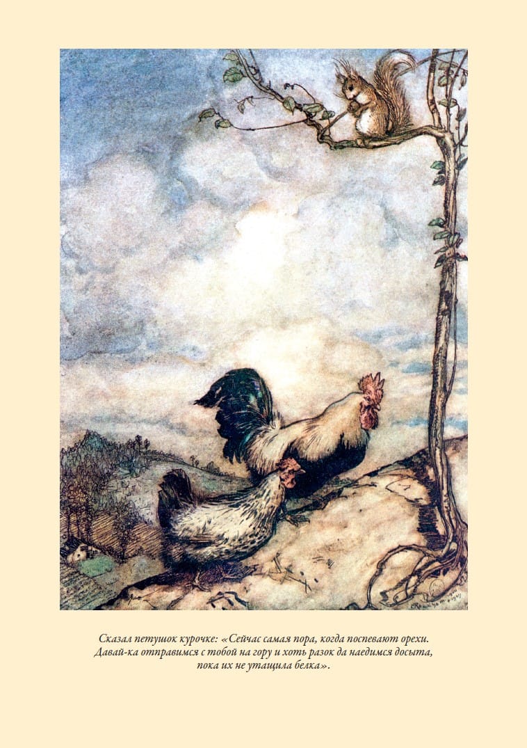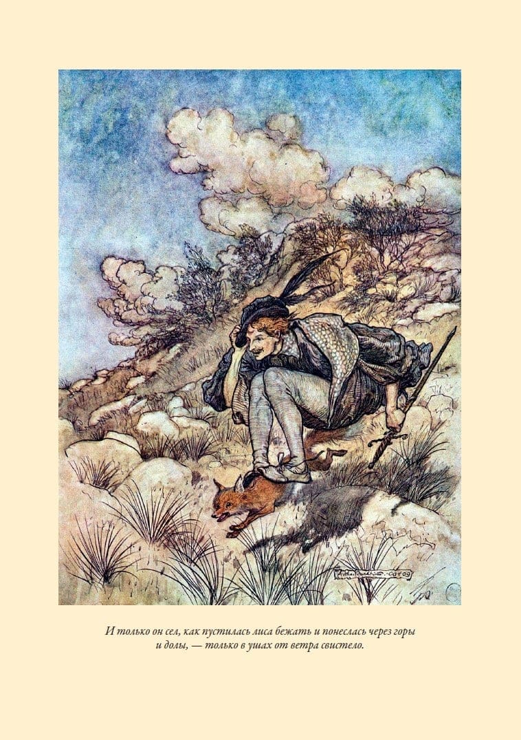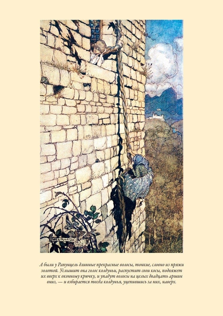 The Brothers Grimm - who hasn't heard of these remarkable ascetics who put so much effort into recording and processing over a hundred German folk tales? It was they who introduced readers to the Bremen Street Musicians, the Brave Tailor, Hansel and Gretel, the Twelve Months, Tom Thumb, and other characters so familiar to us now. Jacob and Wilhelm were yearlings, they were born in the last quarter of the XVIII century in a modest official family. The brothers lost their father early, but managed to enter the law faculty of the University of Magdeburg. However, the study of law, which they took up at the insistence of his mother, did not fascinate neither Jacob nor Wilhelm. They were more interested in history, especially the life of the common people. A few years after graduation, the brothers were able to give themselves entirely to their favorite subject: Jacob was lucky enough to get a place in the royal library. This well-paid position left a lot of free time, and the brothers enthusiastically gave themselves to scientific and literary works. Jacob and Wilhelm began recording German fairy tales at the very beginning of the nineteenth century; a book of their collected texts was published in 1816. In the preface to this edition, the brothers wrote that "a man receives from his homeland guardian angel, which accompanies him in life; it is an inexhaustible treasure of fairy tales, sagas and stories". Now, thanks to the Brothers Grimm, the treasures of German folk tales have become the property of all mankind. In this edition the texts of fairy tales are accompanied by the works of the famous British artist Arthur Rackham, who is deservedly considered the outstanding master of the Golden Age of British book illustration. The future artist was born in the fall of 1867 in a large family. He began an independent life with a modest position of a clerk, but the clerical routine Arthur was not satisfied with: he wanted to do more creative work, and he began to take drawing lessons. It did not take long, and by the beginning of the twentieth century Rackham gained a reputation as a recognized master of book illustrations. In particular, he became the author of magnificent drawings for a collection of legends and legends, collected popularizer of ancient Irish myths James Stevens. By the age of fifty, Rackham had entered a period of creative flourishing, his illustrations often adorned luxury expensive publications. The original drawings were often shown at numerous exhibitions, including the Louvre, and sold at international art auctions.
