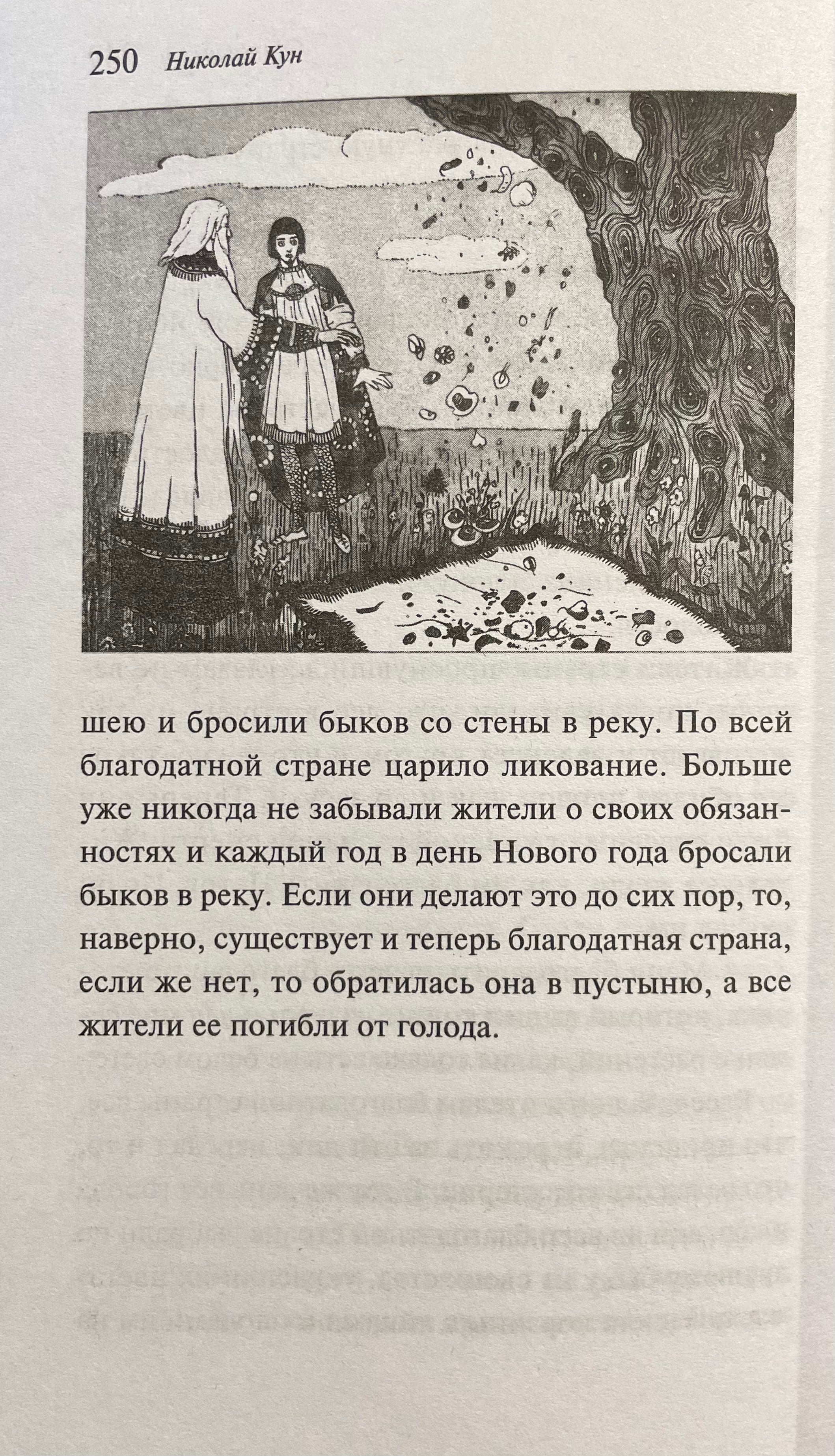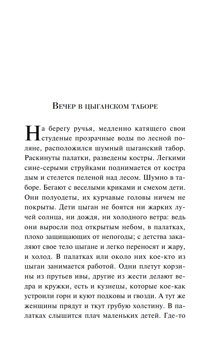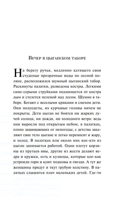 This collection includes Roma beliefs and tales collected by Nikolai Albertovich Kun (1877–1940), author of the renowned books "Legends and Myths of Ancient Greece" and "Tales of the Peoples of Africa." The text is complemented by illustrations by L. M. Alekseevskaya, which were included in the 1922 edition.