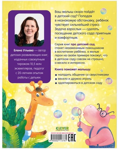 The book about kindergarten will be an indispensable assistant in the education of the child, and cute characters will show by example that in kindergarten is not scary at all, and fun and interesting. The book will help the baby: to establish communication with peers fun and friendly play adapt in kindergarten In the collection of 12 tales. The book includes stories by Elena Ulyeva from the series "Tales about kindergarten": "Know how to share", "Do not want! I will not!", "Friendly play", "Kindergarten without tears".