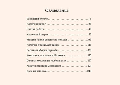 In this book, you will meet the friendly scarecrow Mr. Rags, the restless mouse Barnaby, the charmingly naive cat Tabitha Fluffy Tail, the restless hedgehog Prickle, the cunning Red Fox, the brave mouse Mr. Rollie, the dreamy seal Selina, the nice mouse Miss Plush, the absent-minded sleepy mouse Mr. Nice and other inhabitants of Honey Valley
