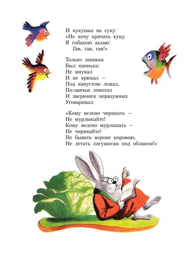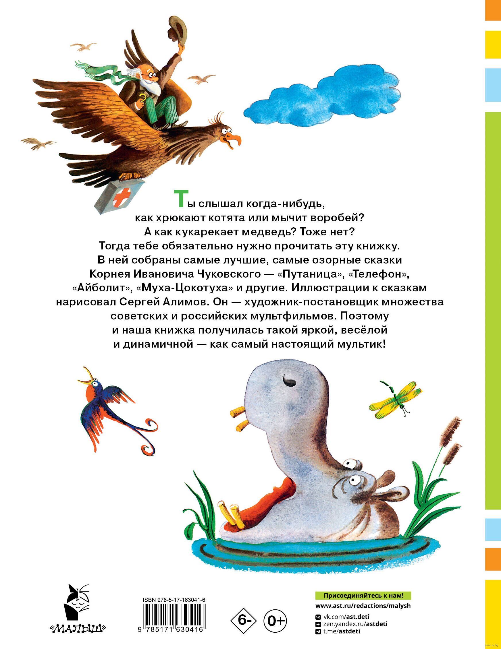 It contains the best, most mischievous fairy tales of Korney Ivanovich Chukovsky - "Confusion", "Phone", "Aybolite", "Fly-Tsokotukha" and others. Illustrations for fairy tales were drawn by Sergey Alimov. He is a director of many Soviet and Russian cartoons. Therefore, our book turned out to be so bright, cheerful and dynamic - as a real cartoon!