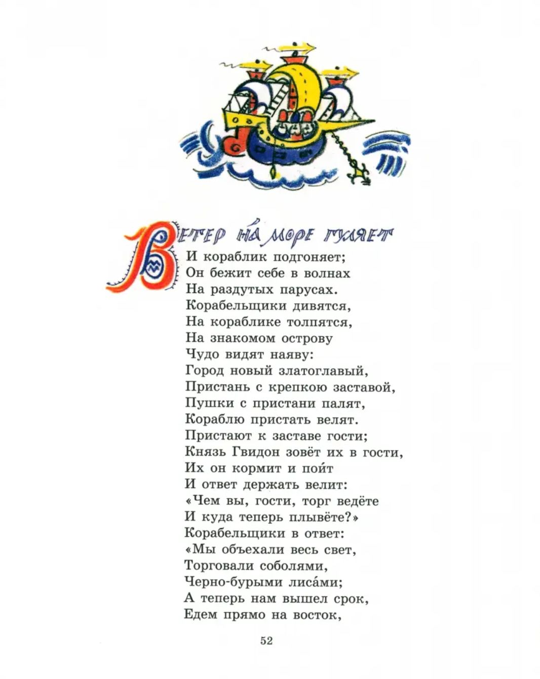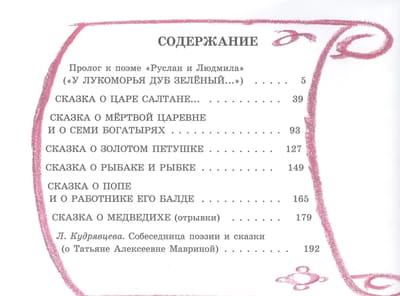 This edition includes all of Pushkin's famous fairy tales, including the unfinished "Tale of the She-Bear," as well as the prologue to the poem "Ruslan and Lyudmila." The book concludes with an afterword by L. S. Kudryavtseva about the life and work of the illustrator and the history of the creation of this collection of works.
